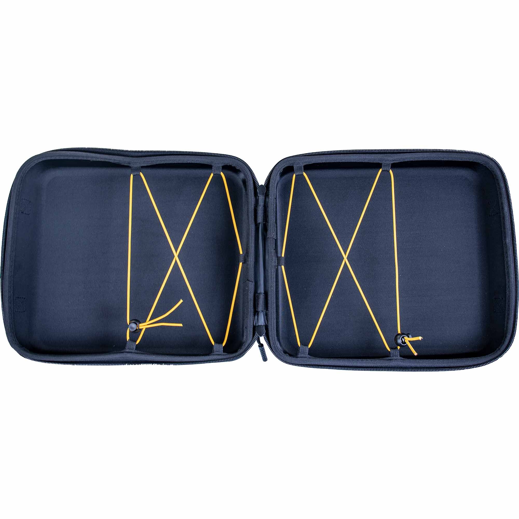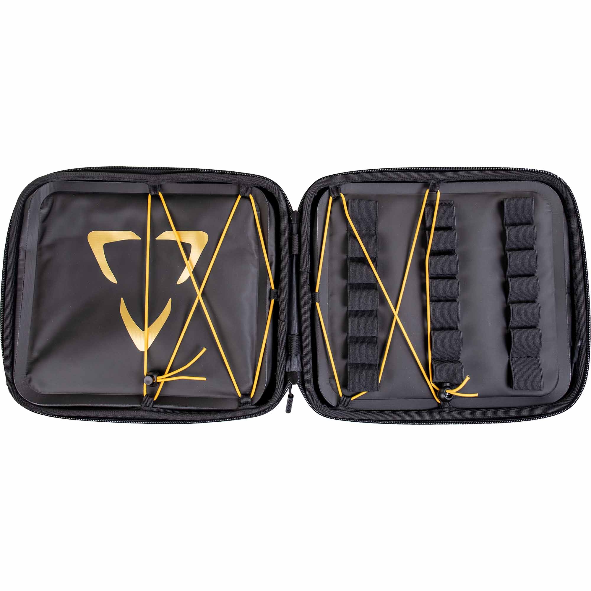 Der Koffer besteht aus dem Außenkoffer, inkl. Markierer- und Werkzeug-Innentaschen. Auf der Werkzeugtasche befinden sich dehnbare Schlaufen, um den Lauf und weitere Inserts sicher verstauen und transportieren zu können.
